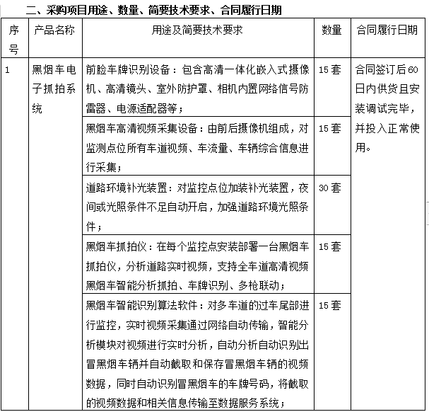 2、 采购项目名称:乐动(中国)产城融合示范区生态环境局黑烟车抓拍项目(第二次)