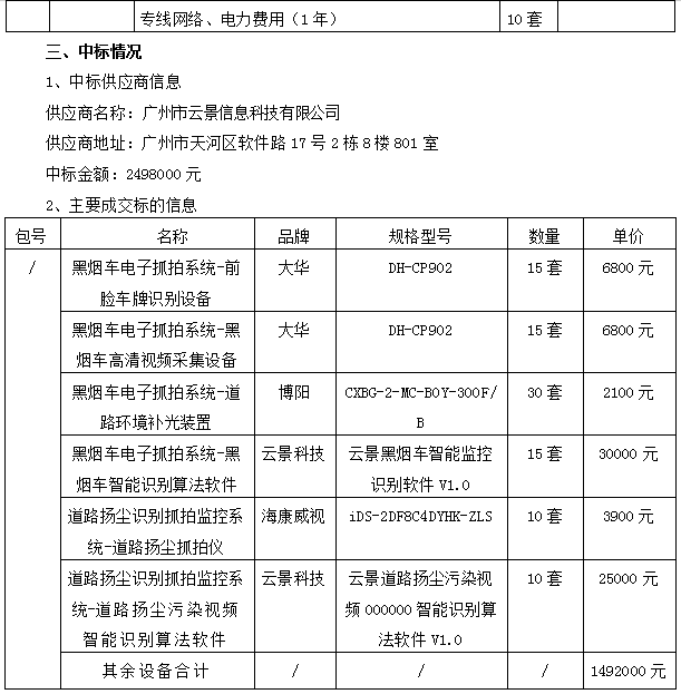 乐动(中国)产城融合示范区生态环境局黑烟车抓拍项目(第二次)中标结果公告