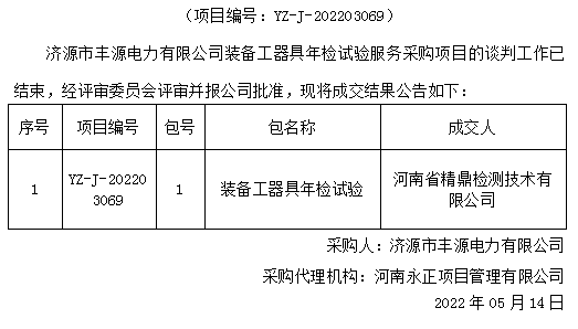 乐动(中国)市丰源电力有限公司装备工器具年检试验服务采购项目成交结果公告