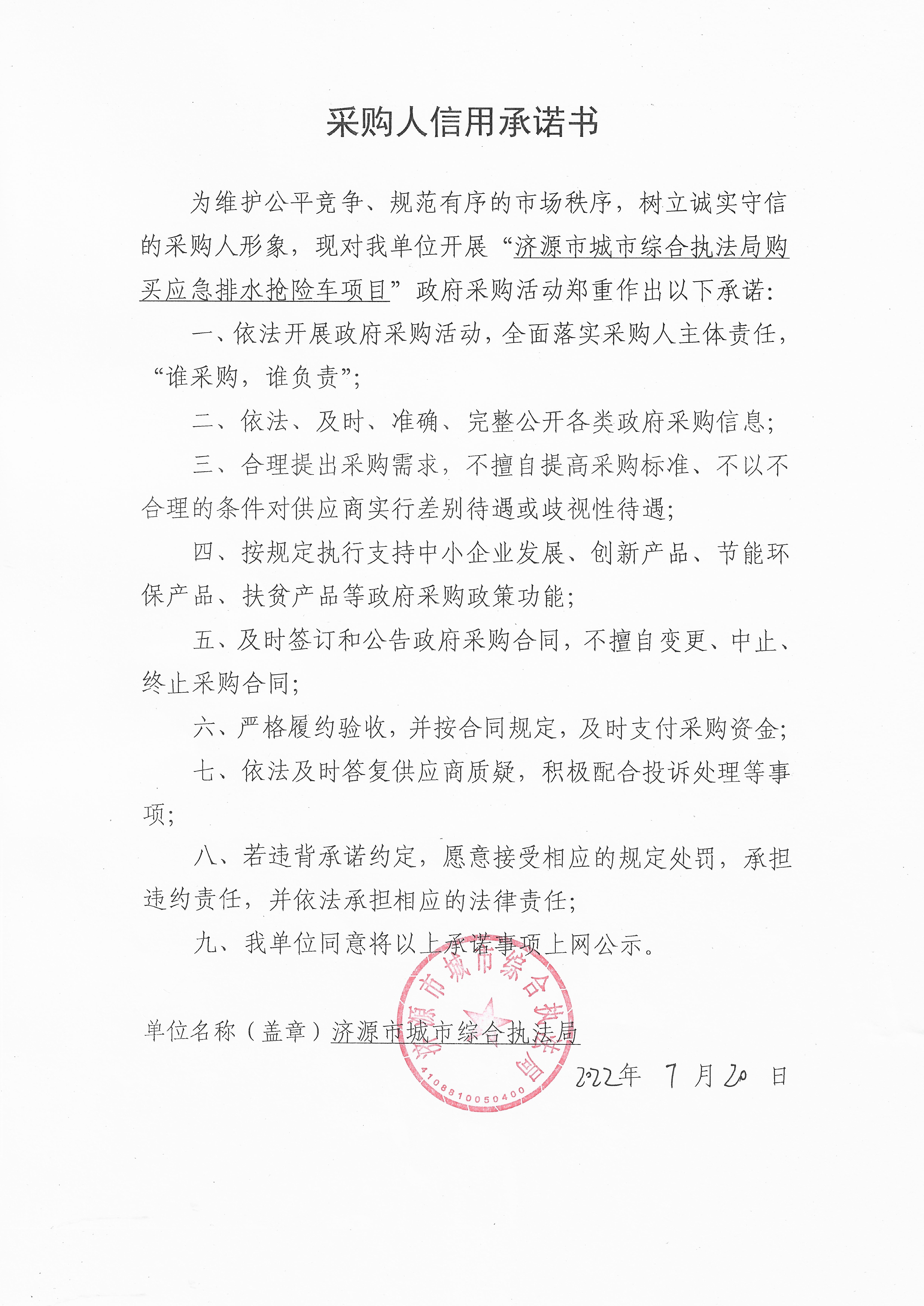 乐动(中国)市城市综合执法局购买应急排水抢险车项目竞争性磋商公告