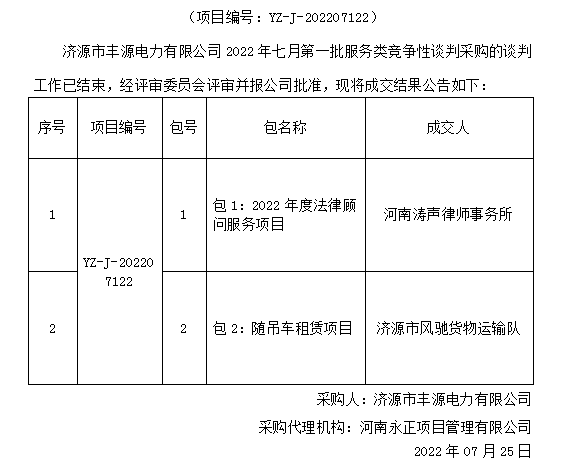 下一篇:乐动(中国)市丰源电力有限公司国电新能源大岭三期50兆瓦风电场110千伏送出线路工程林业砍伐许可咨询服务项目成交结果公告