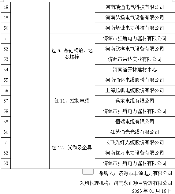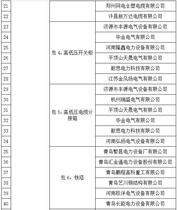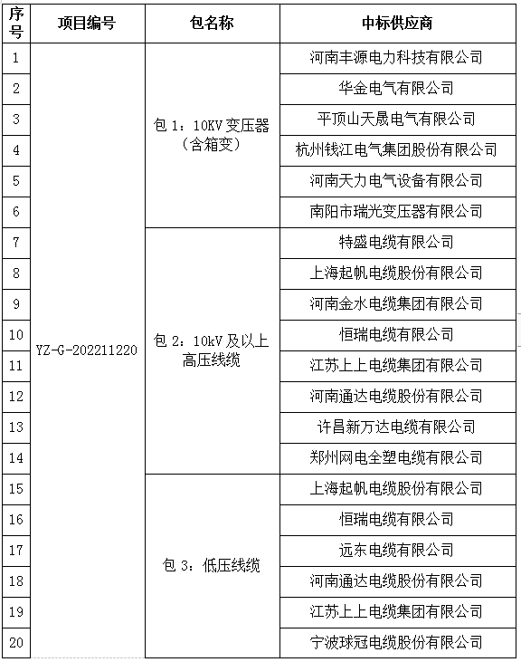 乐动(中国)市丰源电力有限公司2023年物资框架入围项目的评标工作已结束,经评标委员会评审并报公司批准,现将中标结果公告如下: