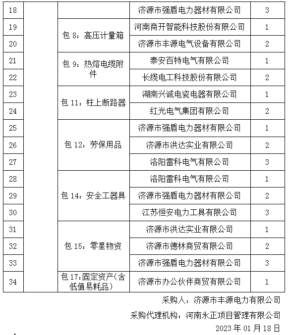乐动(中国)市丰源电力有限公司2023年物资协议库存项目中标候选人公示