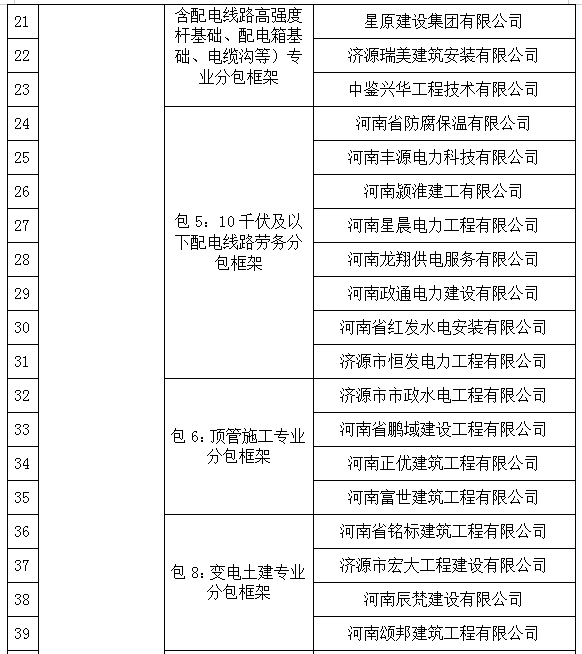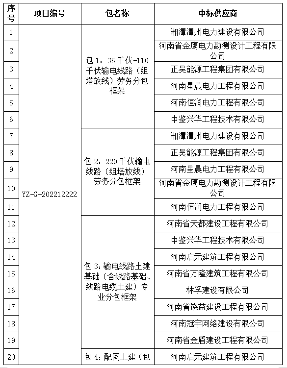乐动(中国)市丰源电力有限公司2023年施工供应商框架入围项目的评标工作已结束,经评标委员会评审并报公司批准,现将中标结果公告如下: