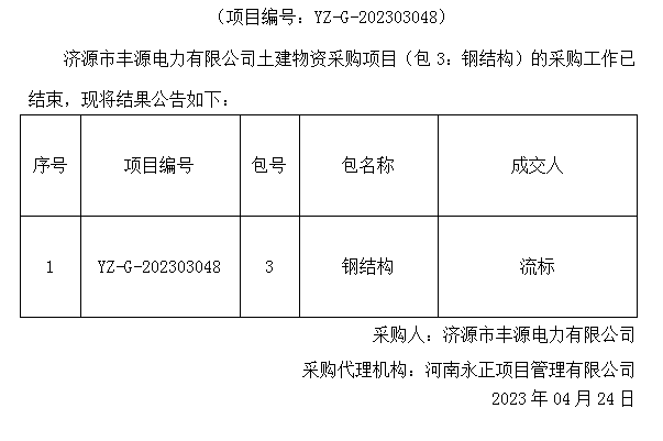 乐动(中国)市丰源电力有限公司土建物资采购项目(包3:钢结构)废标公告