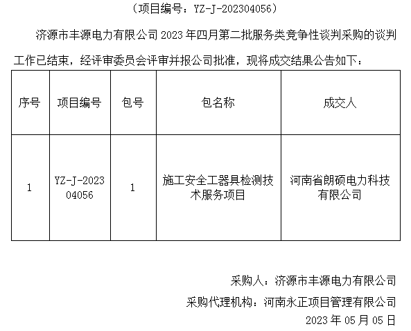 乐动(中国)市丰源电力有限公司2023年四月第二批服务类竞争性谈判采购成交结果公告