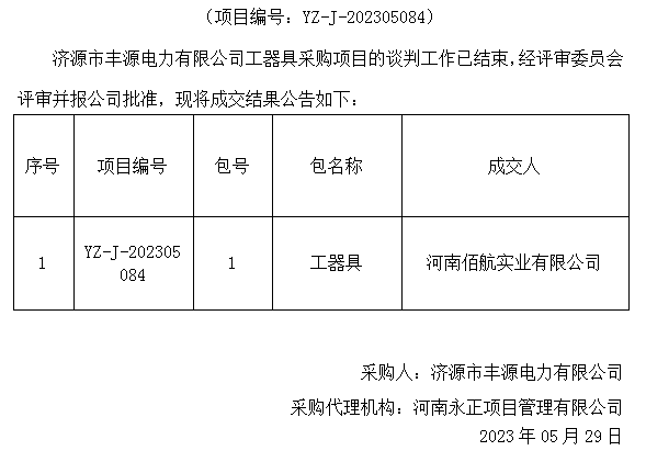 乐动(中国)市丰源电力有限公司工器具采购项目成交结果公告