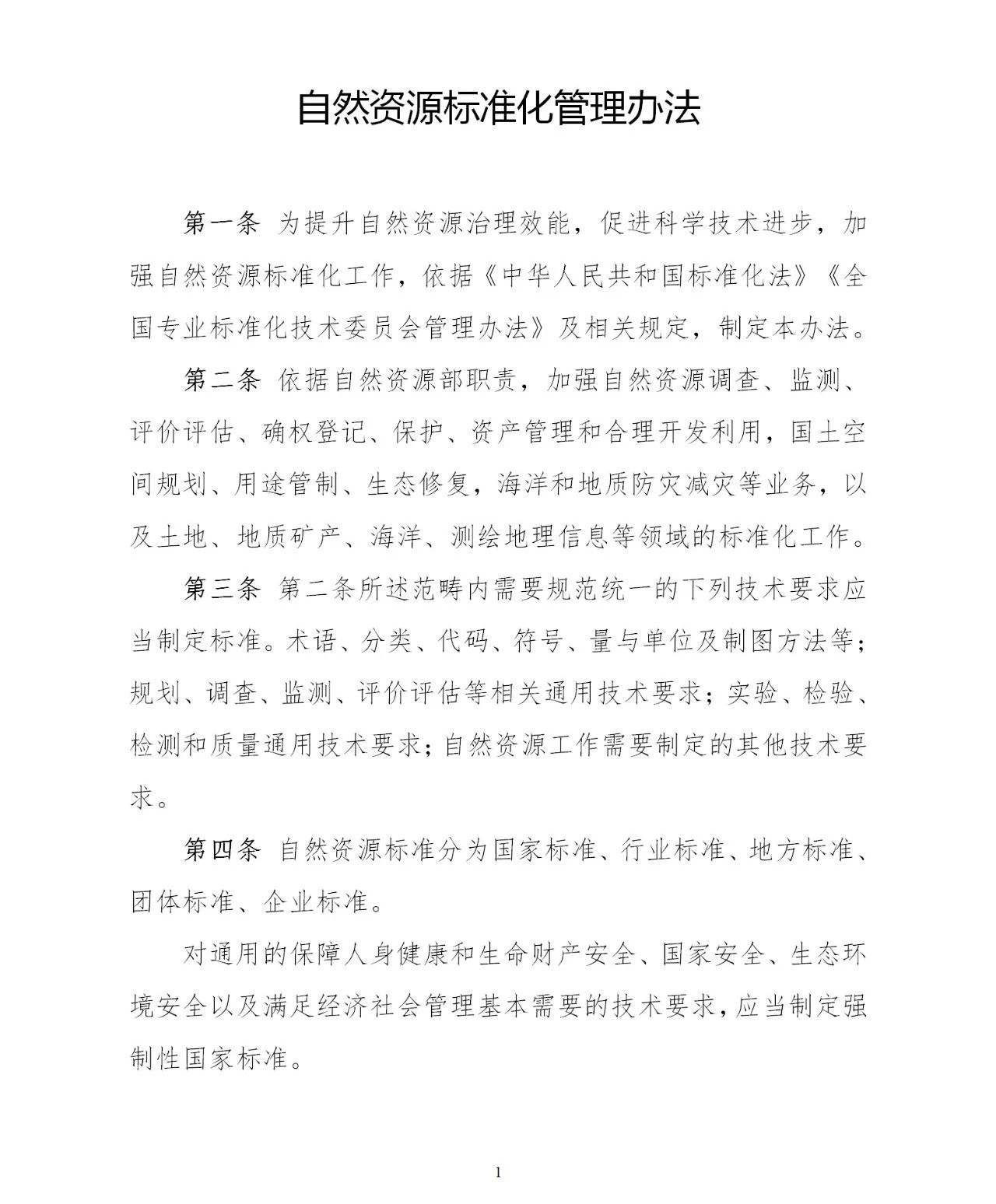自然资源部关于印发《自然资源标准化管理办法》的通知