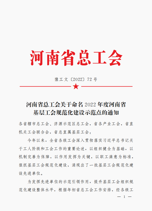 ld平台首页工会委员会被河南省总工会命名为“2022年度河南省基层工会规范化建设示范点”
