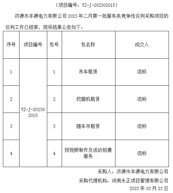 乐动(中国)市丰源电力有限公司2023年二月第一批服务类竞争性谈判采购项目废标公告